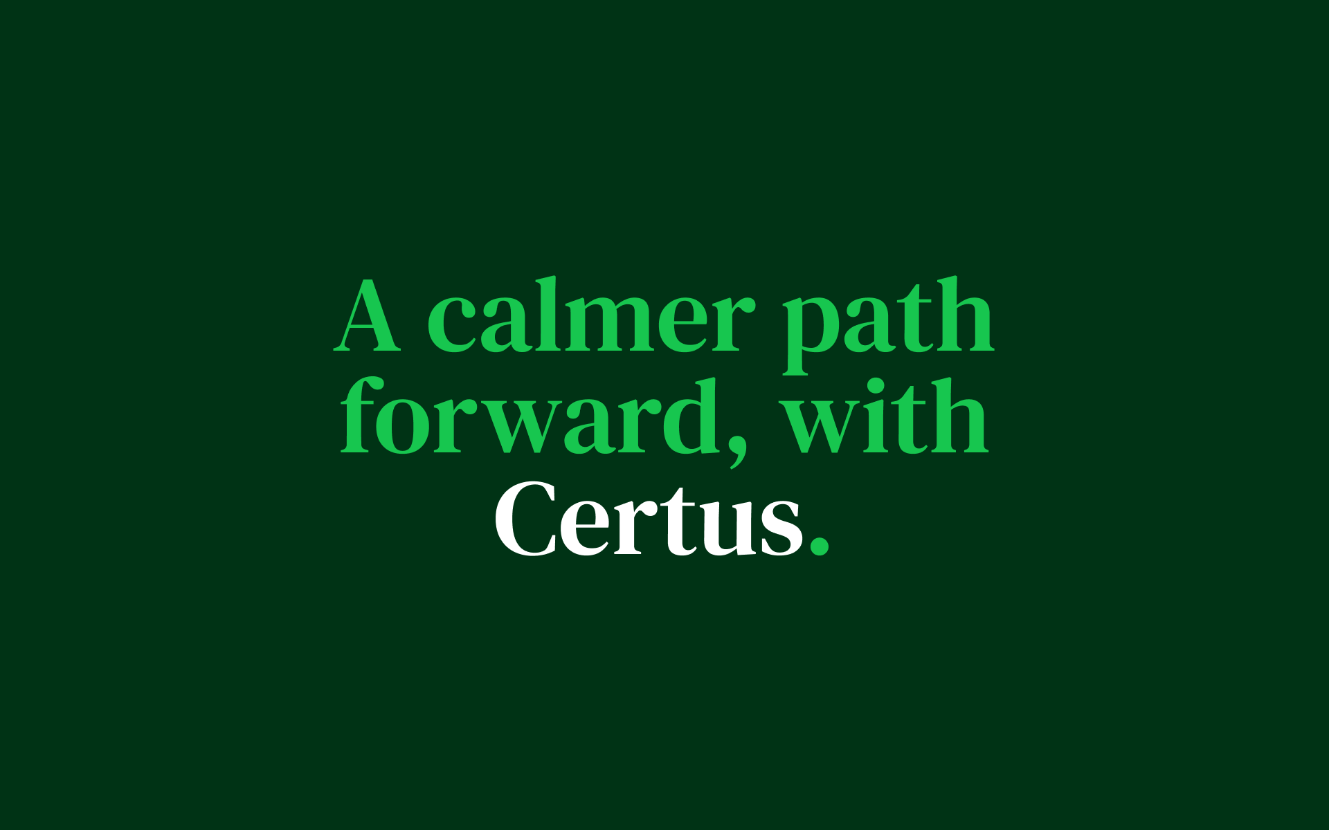 To bring ‘The Next Chapter’ to life visually, we rooted the brand identity in our modernist principles of simplicity and functionality. All imagery for the brand is derived from the ‘active dot’, the full stop at the end of the Certus logo. This simple yet powerful element represents completion, clarity, and the opportunity to move on. We also expanded the logo’s application into a bespoke ‘assurance style’ mark, reinforcing their expertise and commitment to compliance. This visual language, paired with a strategy of progress, ensures the brand feels cutting-edge while remaining approachable