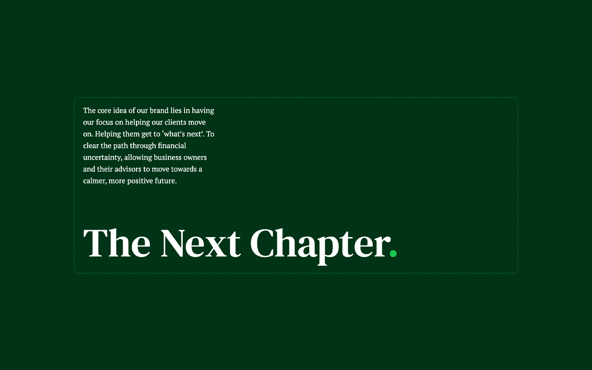 Through our collaborative process, we developed a core strategic idea: ‘The Next Chapter’. This concept reframes insolvency from an ending into a transition. It articulates Certus’s primary purpose: to clear the path through financial uncertainty, allowing business owners and their advisors to move towards a calmer, more positive future. We leaned into our belief in the power of clarity to communicate this complex shift effectively. By positioning insolvency as just one chapter in a larger story, we created a brand point-of-view that leads with humanity and promises a constructive approach.